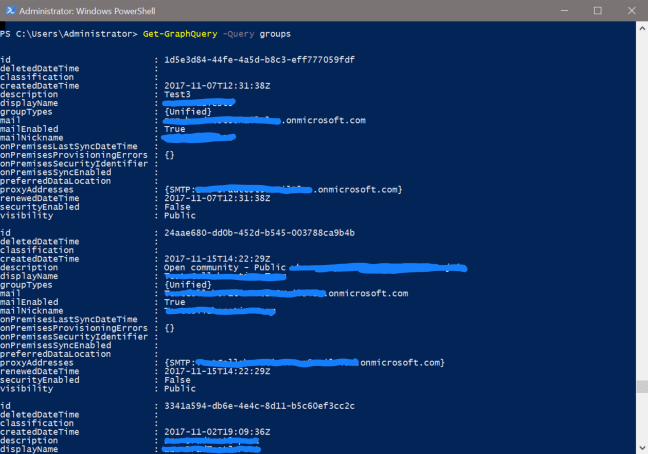 So, I decided to dig in via the xMSGraph.PowerShell module that I have created to run a query against Office 365 Groups, because Microsoft Teams is built on top of it: