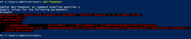 What this does is returns all of the Microsoft Teams that the currently authenticated user is a member. Well, if you’re administrating properly, you have separate administrative accounts and, for Microsoft Cloud services, you would not even be licensed for unnecessary user space services, like Teams. So, you would not be a member of any Teams, let alone all of the Teams that you need to administrate.
