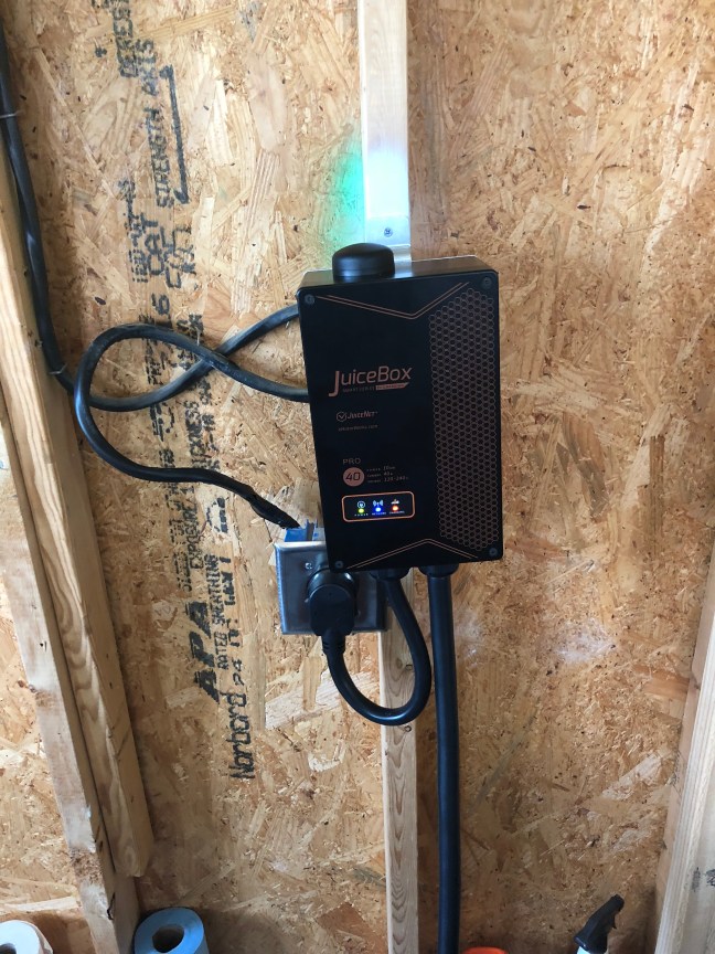 A couple of days ago, I ordered a level 2 charger and it was waiting for me when I arrived home. The level 2 charger uses a 220V circuit, similar to an electric clothes dryer or electric oven. I had my garage pre-wired with a 60A circuit when we had the house built in anticipation of getting an electric car.