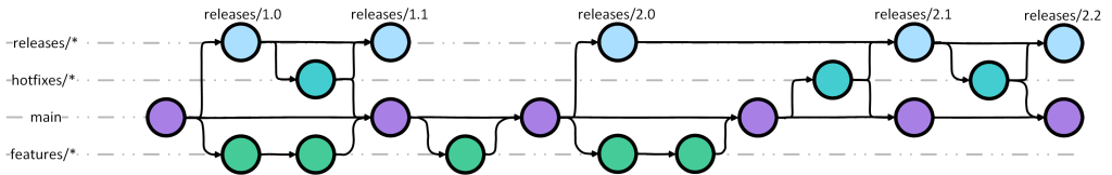 This is where Release Flow comes into play. In release flow, feature branches are still used, but they are merged into the default branch, which would then be used to test the code and apply it to the “test” environment. However, the default branch would remain as the only long-lived branch. Once that code is ready for production, a new release is created in the form of a medium-lived branch called a release branch. The various release branches would be limited to some supportable number, perhaps N-2. Then, the various deployments would be aligned to the releases and could be changed in any desired pattern. Perhaps there is a “hero region” and it would receive the changes first, then other production deployments would be updated after some time. Whenever a release is no longer being used, that release branch is pruned.